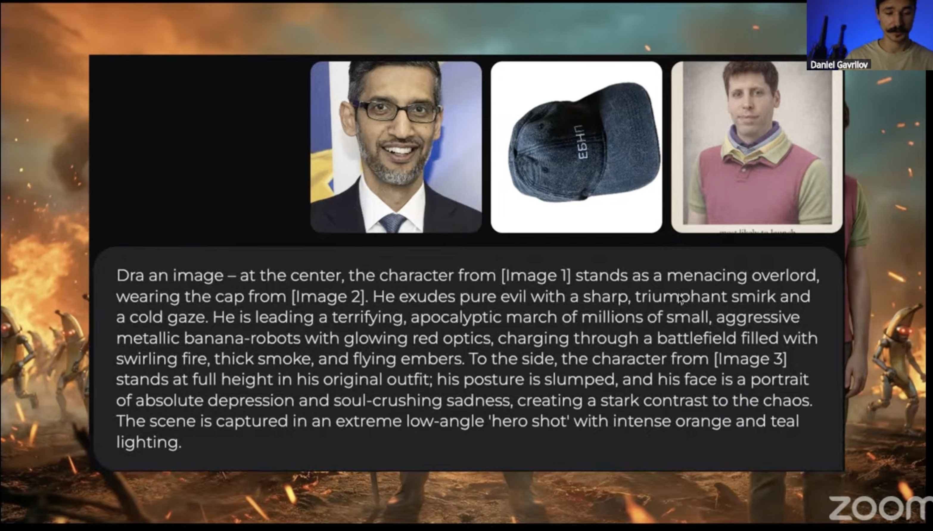 nano banana может использовать до 14-ти референсных изображаений. Делает инфографику.