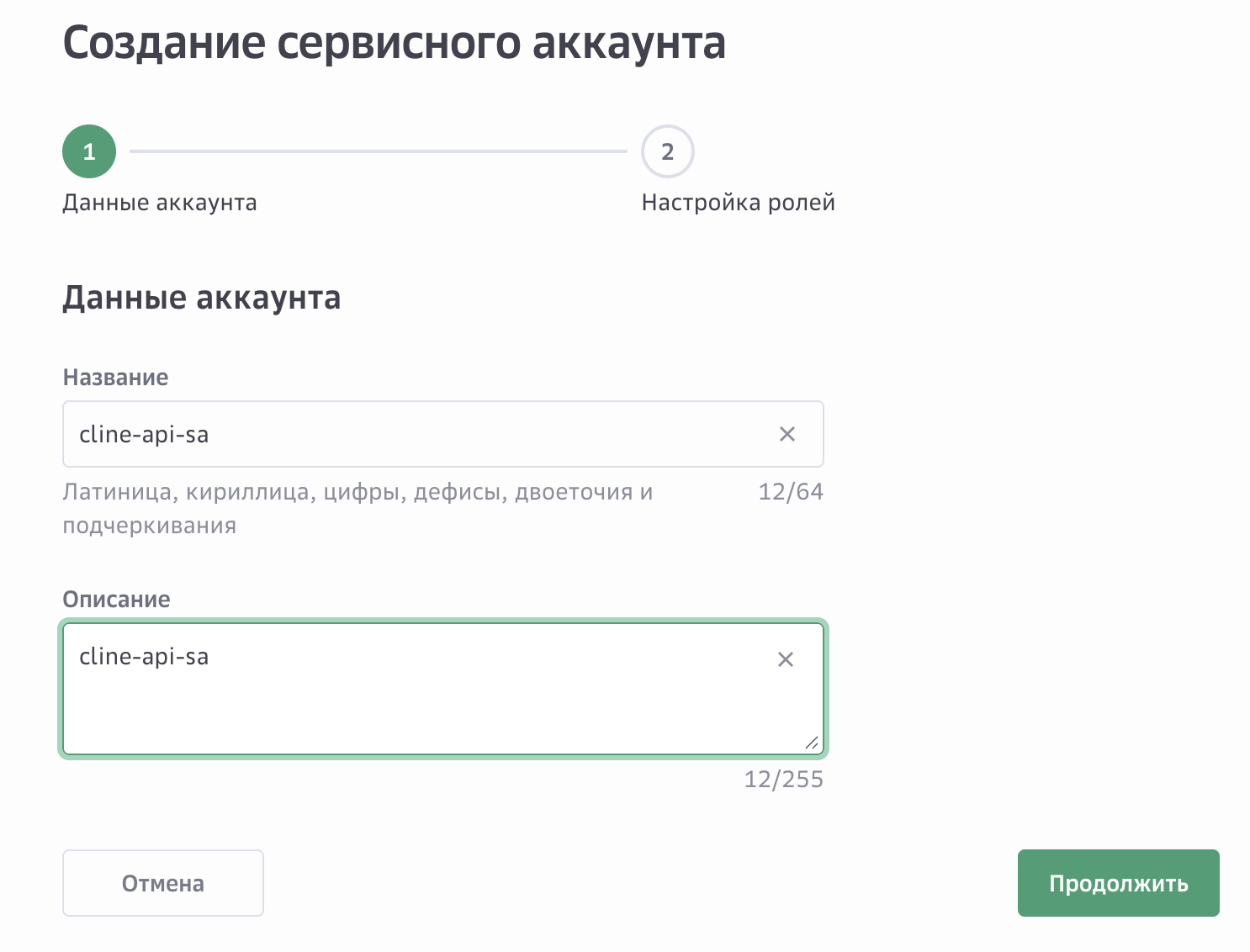 Создание сервисного аккаунта