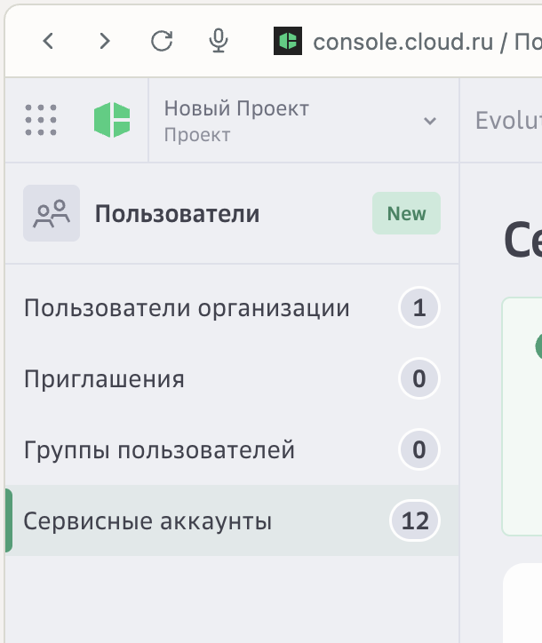 Переходим в Сервисные аккаунты