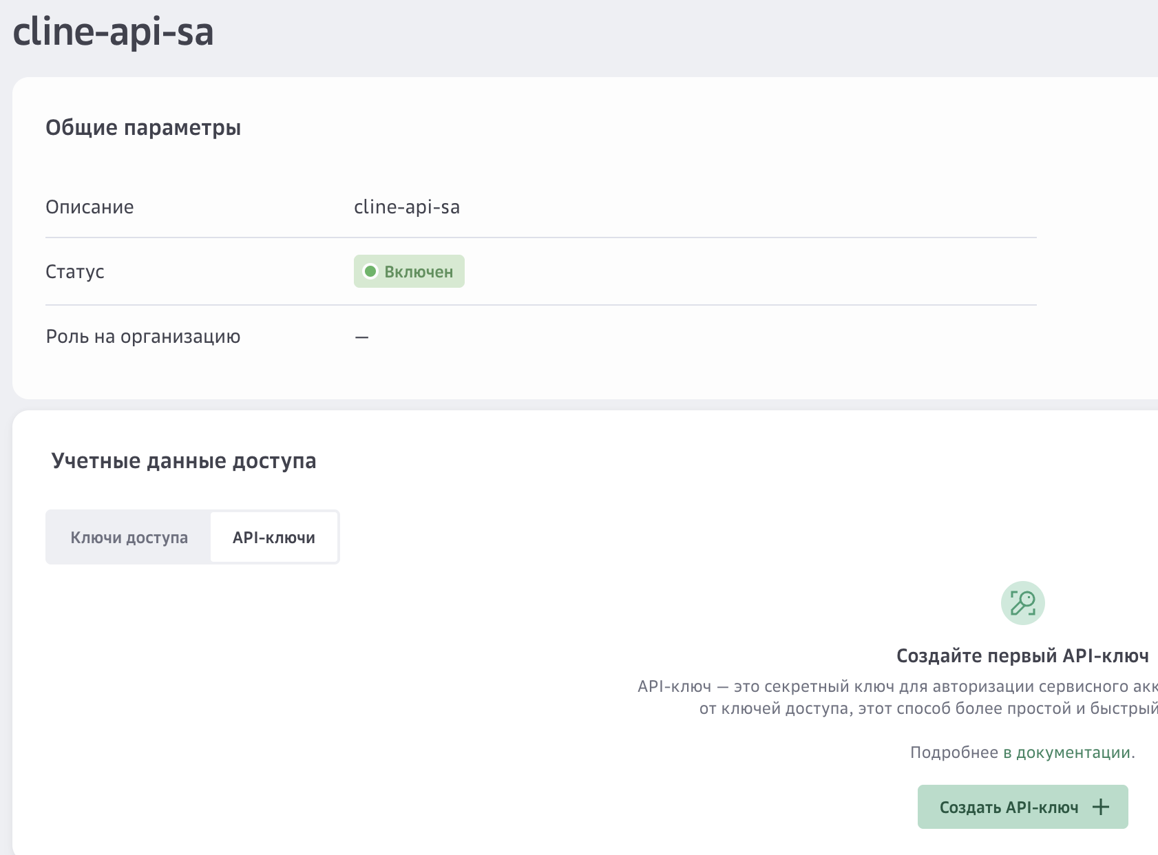 Создание API-ключа