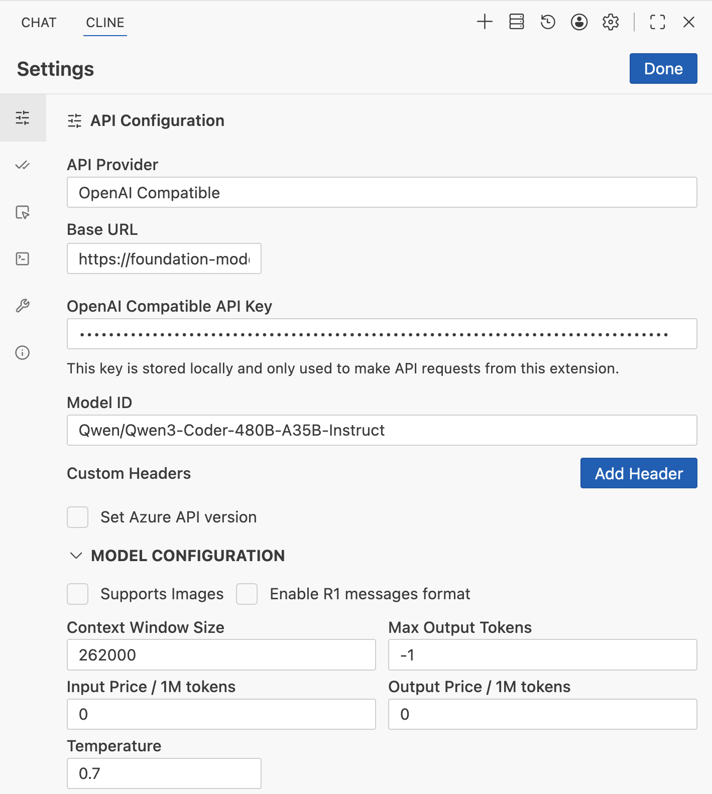 Настройка Cline